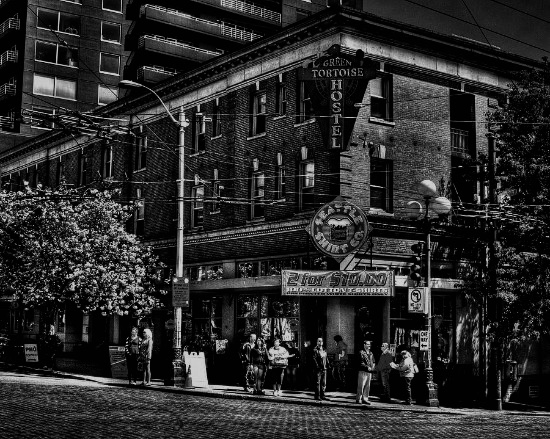 Pensioners hotels, dozens of bars, burlesque theaters, XXX movie houses, lap dancers, pawn shops, card rooms, cheap eats, news stands, donut shops, pool halls, bookstores, and tattoo parlors fanned out to the north and south. During the day the bus stops were crowded with people making connections. The electric buses snapped as their pantos slid along the overhead electrified wires. The washed mingled with the unwashed. Winos panhandled, picked pockets, snatched bags, and sought their fellows to share bottles. With bag in hand, they slunk into the shadows. That was First Avenue during the day. The doorways, cleansed and businesses opened to the throngs of shoppers. During the day there was an optimism of commerce, jugglers, fire eaters and buskers, mime’s and street hustlers. The aroma of deep fried chicken and raw fish and the faint leavings of human waste that the hoses hadn’t caught. The doorways during the day were alive with possibilities. But at night they were the gatherers of doom, the reapers of the dead.